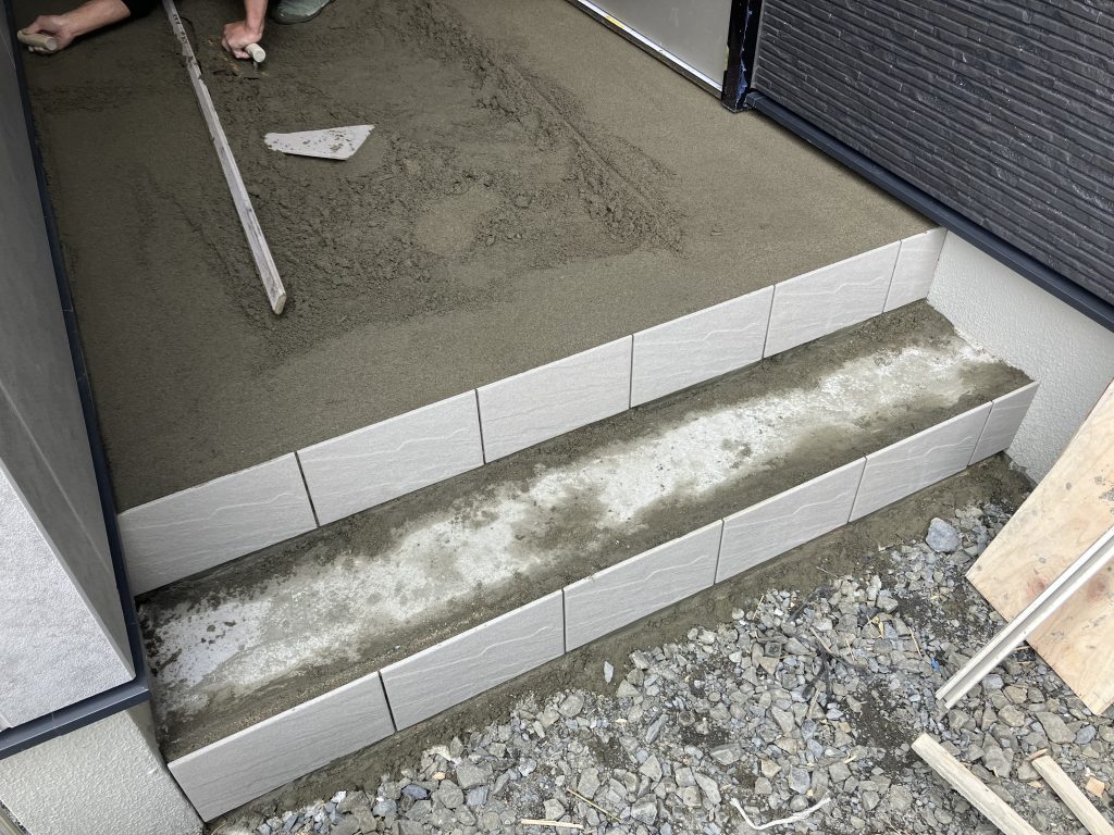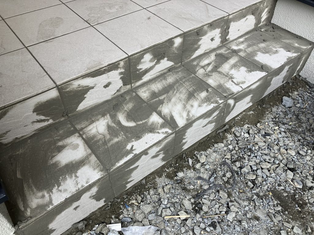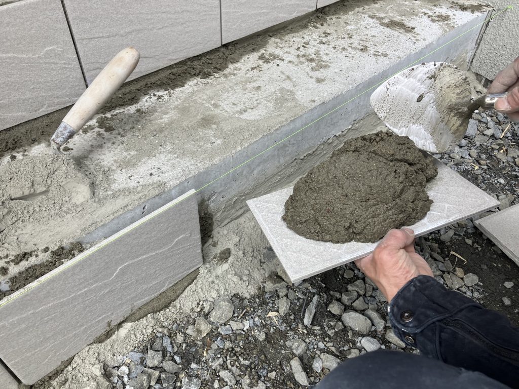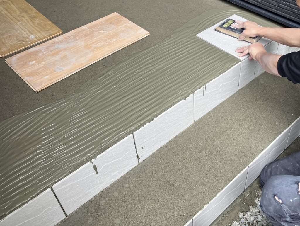 下地が完成したら十分に乾かし、セメントを塗った後タイルを貼っていきます。タイルを貼り終えたらセメントが固まるまで待ちます。