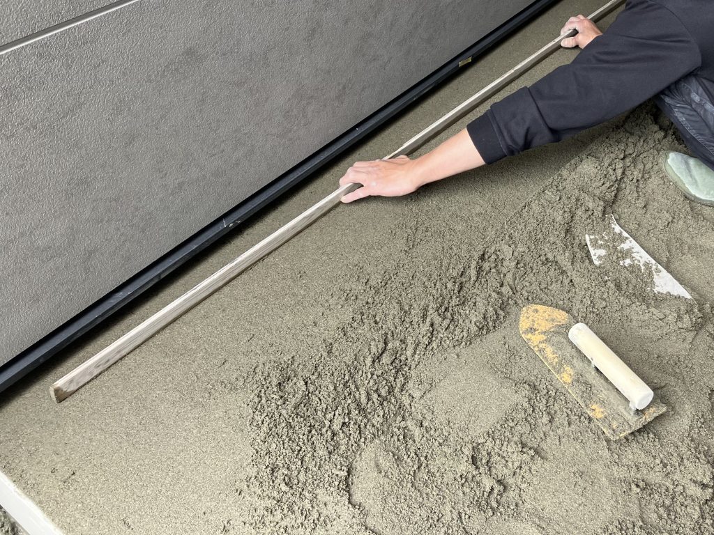 次に平面部分にモルタルを盛り水の流れる勾配を考えながらタイルを貼る下地を作っていきます。